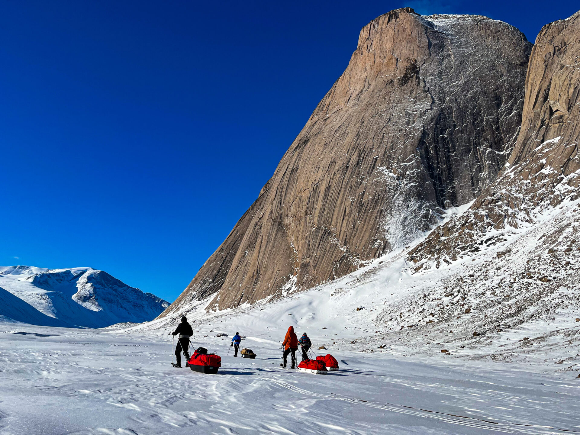 Le transport se fait par motoneige entre Qikiqtarjuaq et l’entrée nord du fjord. Les motoneiges tireront un traîneau traditionnel, le qamutik, avec tous les bagages et certains des participants. Le transport n’est pas inclus pour se rendre à Ottawa ni pour en revenir ; nous vous proposerons des solutions lors des journées préparatoires. Pour le reste, c’est vous qui serez à ski avec vos pulkas!