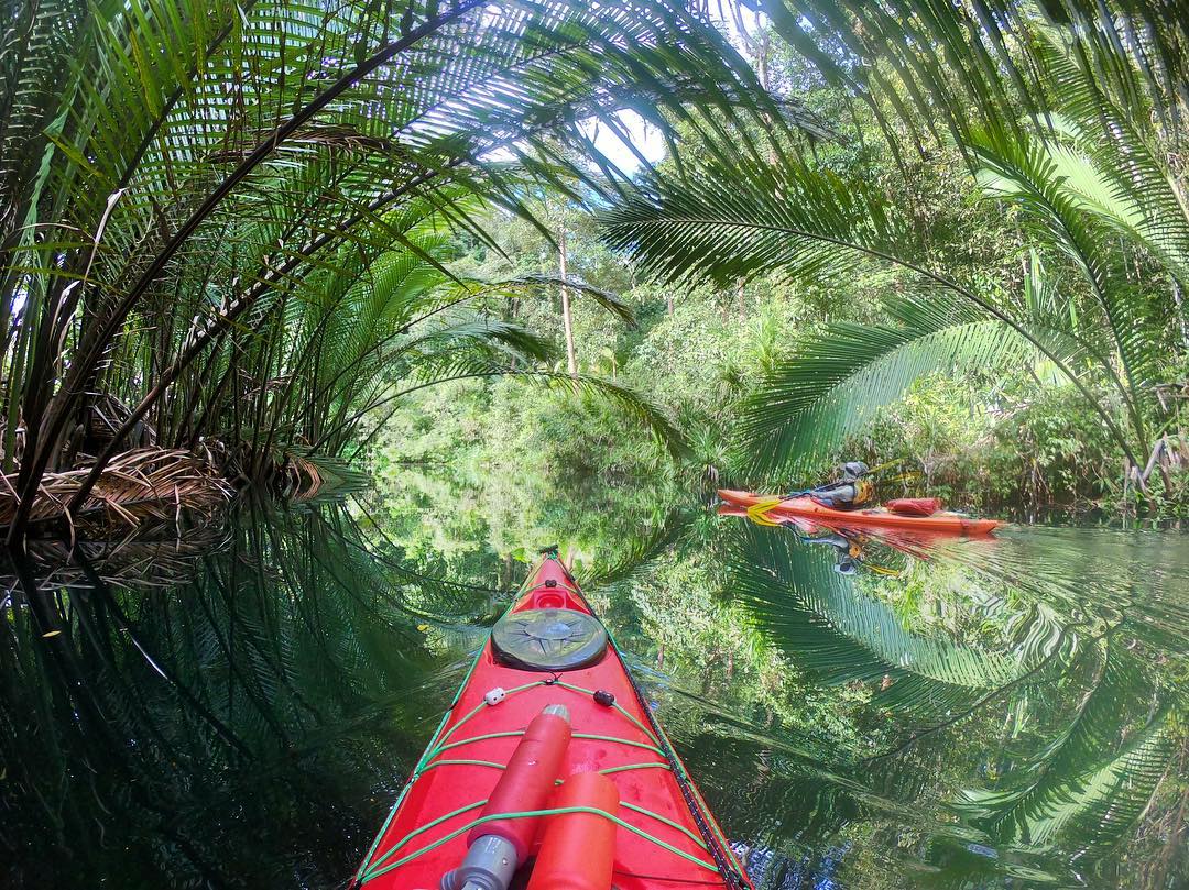 Au cœur du Triangle de Corail, les îles Raja Ampat abritent les récifs coralliens les plus riches en biodiversité au monde. La géologie y est exceptionnelle : des îlots karstiques, comme des champignons parfois coiffés de jungle, les pieds dans l’eau turquoise. Tout au sud de l’archipel, sur l’île la plus difficile à atteindre, la faune tropicale est riche et variée (tant au-dessus que sous l’eau) ; c’est d’ailleurs la plus préservée et la plus mystérieuse de l’archipel. C’est bien sûr celle-ci que nous explorons grâce à nos kayaks : Misool.