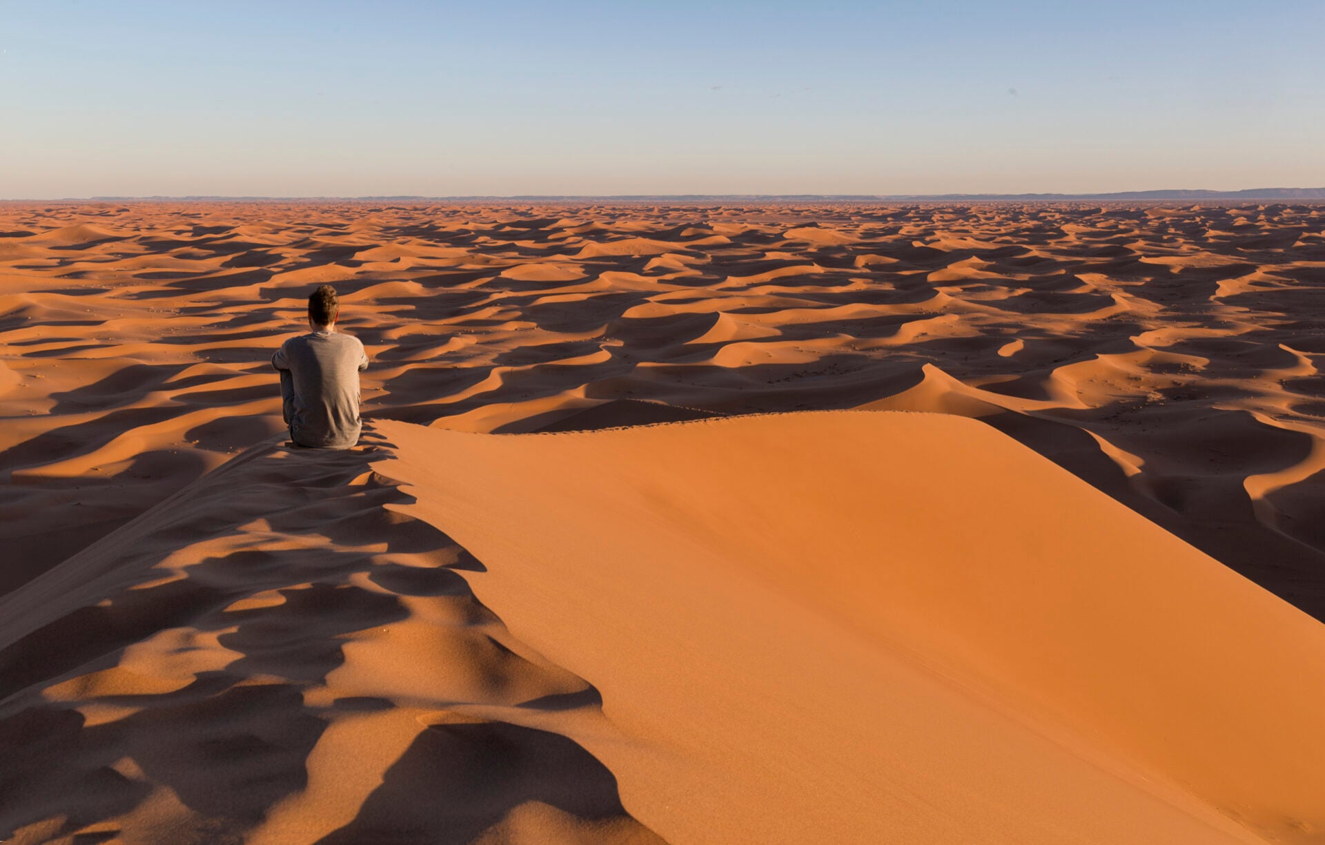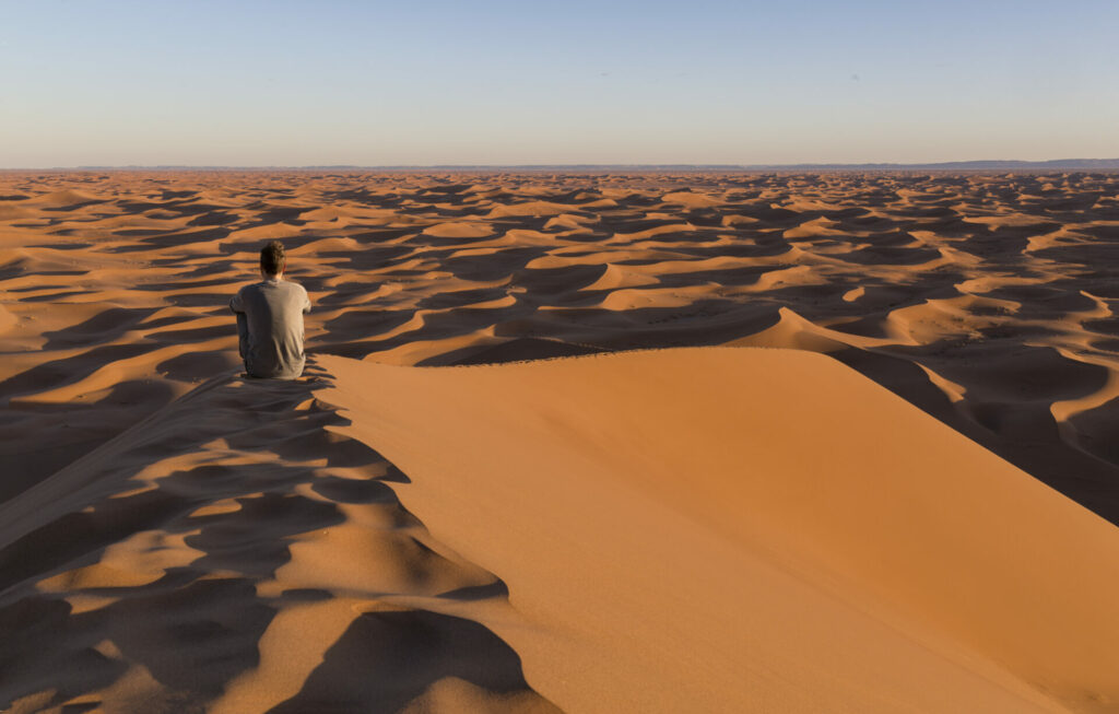 - Un trek loin des itinéraires classiques (l’Erg Blanc ou l’Erg Chebbi), pas de foule à prévoir, c’est la vraie solitude qu’offre le désert.