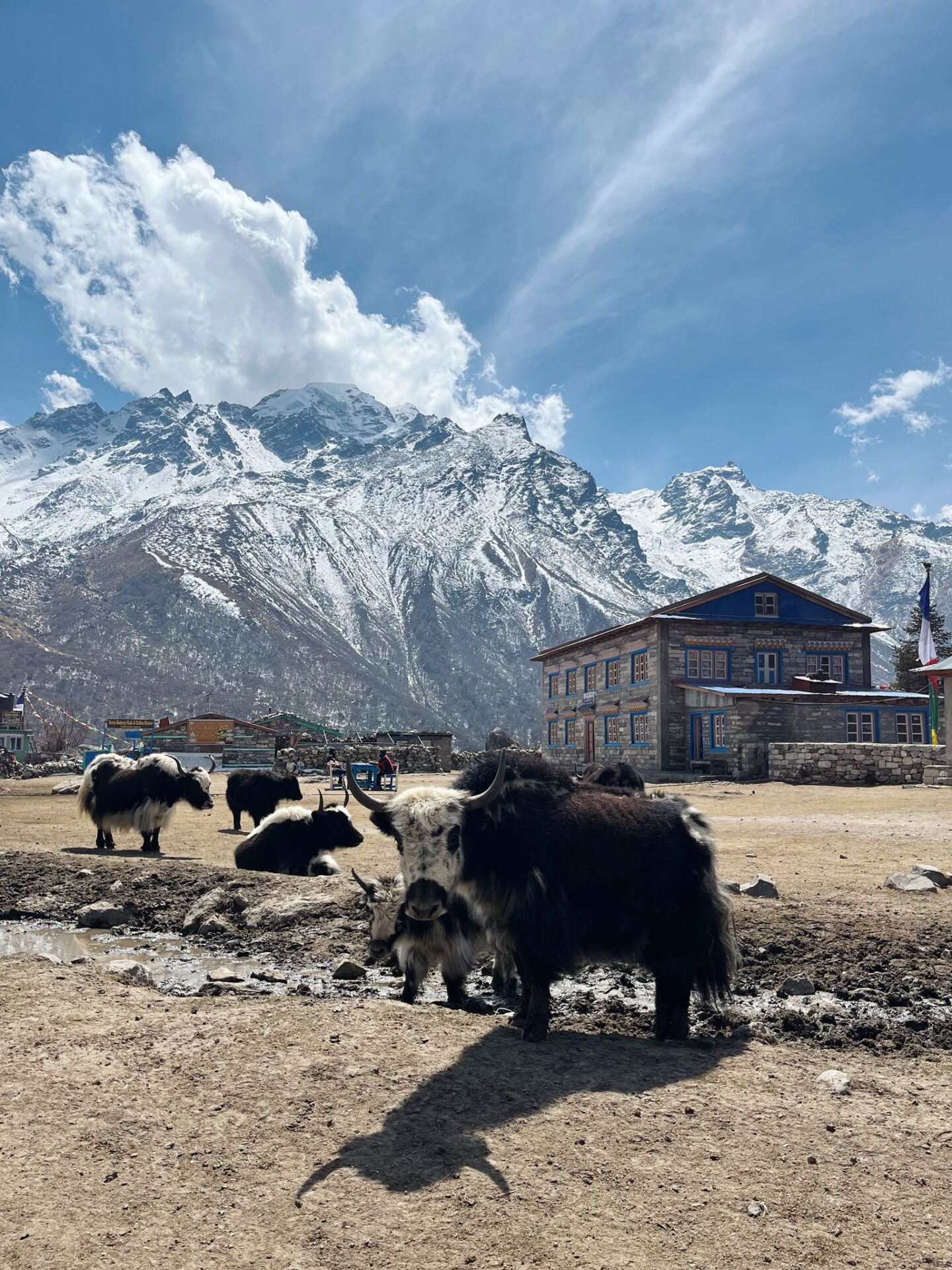 Ces lodges appartiennent à des familles tamangs qui vivent là neuf mois par an. L’atmosphère est chaleureuse, la salle commune sent le bois qui brûle, le poêle à bouse de yak (oui, bouse de yak, c’est le combustible local) dégage une chaleur réconfortante. C’est rustique, c’est authentique, et après sept heures de marche, c’est parfait. En montagne, tout le monde dort dans les mêmes lodges : il n’existe pas de version « luxe » à 3870m. C’est démocratique, le Langtang.